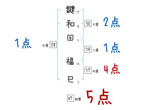 鍵和田福巳さんの画数の鑑定結果
