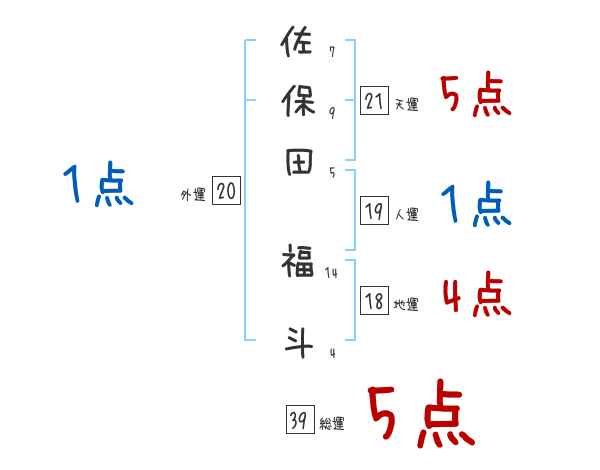 佐保田福斗さんの画数の鑑定結果
