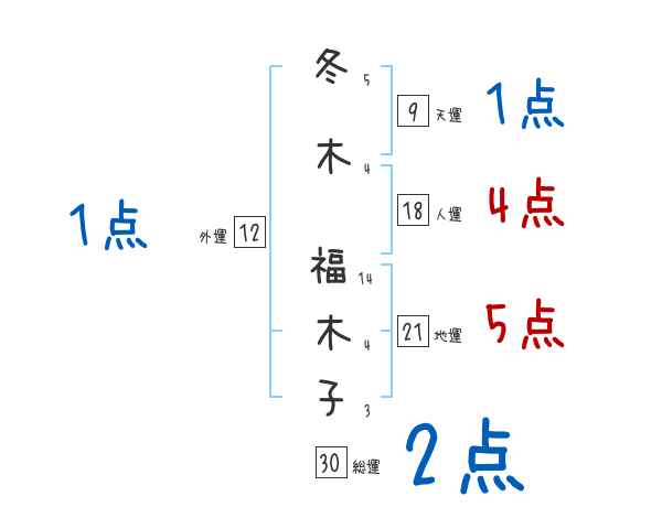 天運![]() | 冬木福木子さんの天運は9画の1つ星!消極的で才能を発揮することが苦手なことも。周りの意見に耳を傾けましょう。 家系が持つ宿命的な運勢を表します。祖先から受け継いだ苗字ですので自分の力が及びません。家柄を象徴します。 |