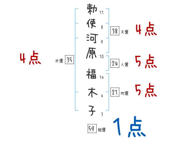 人運![]() | 勅使河原福木子さんの人運は24画の5つ星!家庭運が良く順調な人生。金運にも恵まれる。 性格や才能などを表す2番目に重要な運勢です。人間関係や協調性、社会的な成功に影響します。主に20歳から50歳ぐらいまでの中年期の運勢を表します。 |