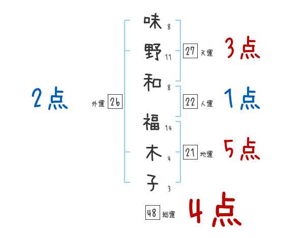 味野和福木子さんの画数の鑑定結果