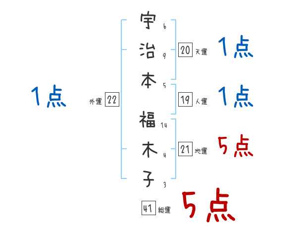 宇治本福木子さんの画数の鑑定結果