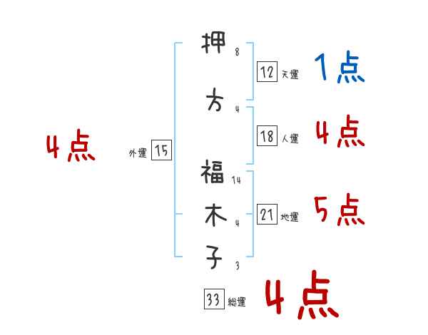 外運![]() | 押方福木子さんの外運は15画の4つ星!人徳があり出世する。順調に物事を進め円満な人生。 生活面を象徴する運勢です。外部から受ける影響力を表し、結婚運、家庭運や職場、環境への順応性を表します。 |