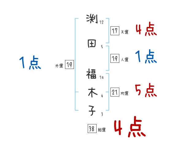 渕田福木子さんの画数の鑑定結果