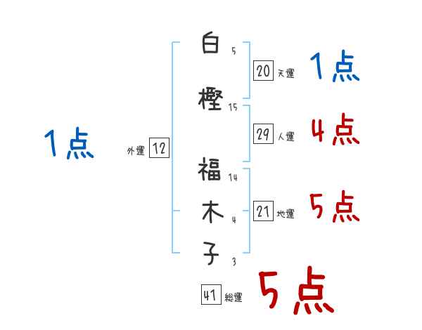 総運![]() | 白樫福木子さんの総運は41画の5つ星!大志を抱き、目標に向かって実力を発揮し達成する。温和な性格。 あなたの人生を表す1番重要な運勢です。生涯を通じて影響する総合運となり、主に50歳以降の晩年期に影響を及ぼします。 |