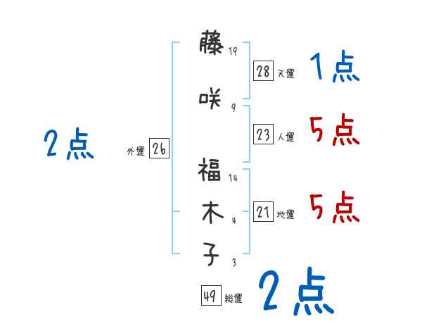 藤咲福木子さんの画数の鑑定結果