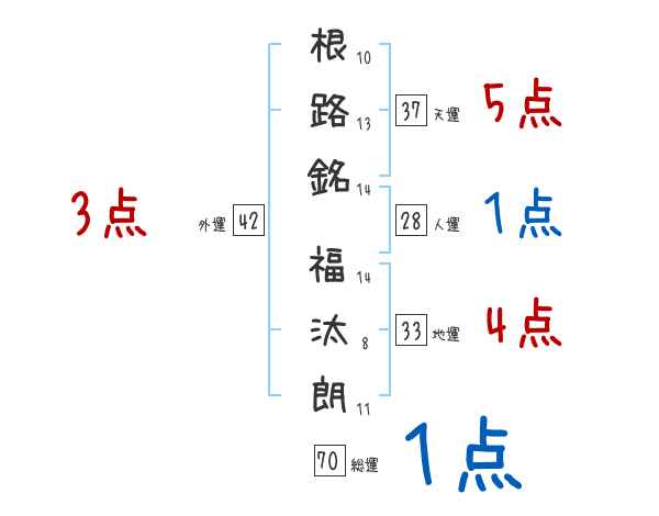 根路銘福汰朗さんの画数の鑑定結果