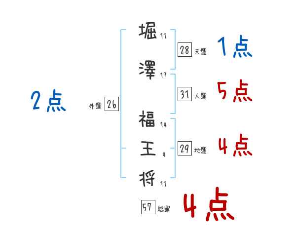 家系が持つ宿命的な運勢を表します。祖先から受け継いだ苗字ですので自分の力が及びません。家柄を象徴します。