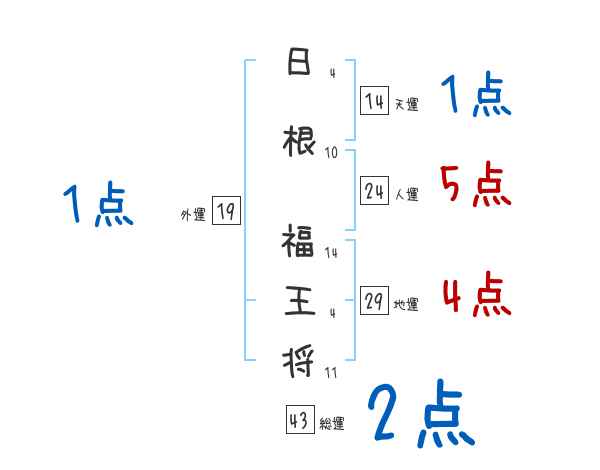 天運![]() | 日根福王将さんの天運は14画の1つ星!人に対して優しいがストレスを溜め込みがち。人間関係のトラブルを避けるよう気をつけましょう。 家系が持つ宿命的な運勢を表します。祖先から受け継いだ苗字ですので自分の力が及びません。家柄を象徴します。 |