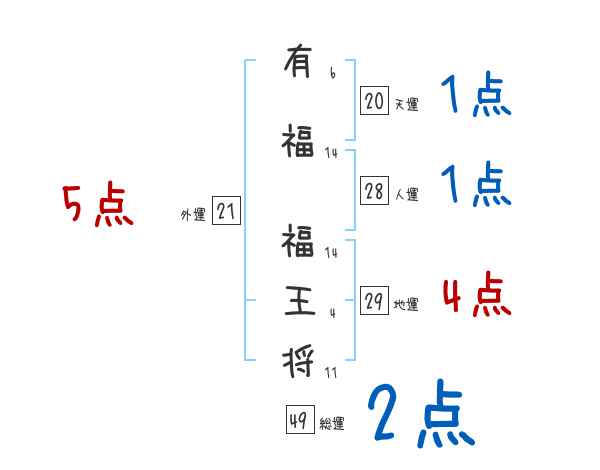 外運![]() | 有福福王将さんの外運は21画の5つ星!統率力がある。独立し成功する。名誉を手に入れる。 生活面を象徴する運勢です。外部から受ける影響力を表し、結婚運、家庭運や職場、環境への順応性を表します。 |