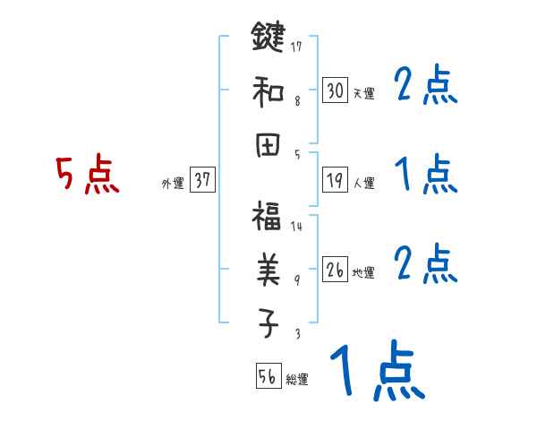 鍵和田福美子さんの画数の鑑定結果