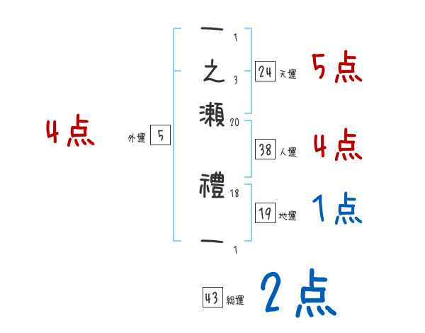 一之瀬禮一さんの画数の鑑定結果