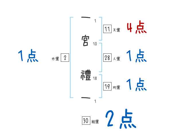 天運![]() | 一宮禮一さんの天運は11画の4つ星!着実に富や地位を得る幸運な人生。 家系が持つ宿命的な運勢を表します。祖先から受け継いだ苗字ですので自分の力が及びません。家柄を象徴します。 |
