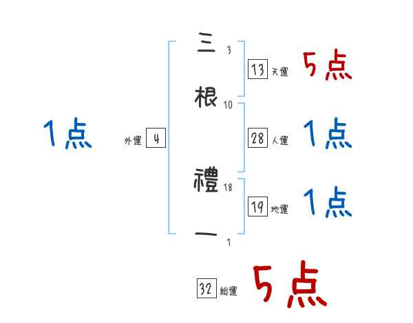 三根禮一さんの画数の鑑定結果