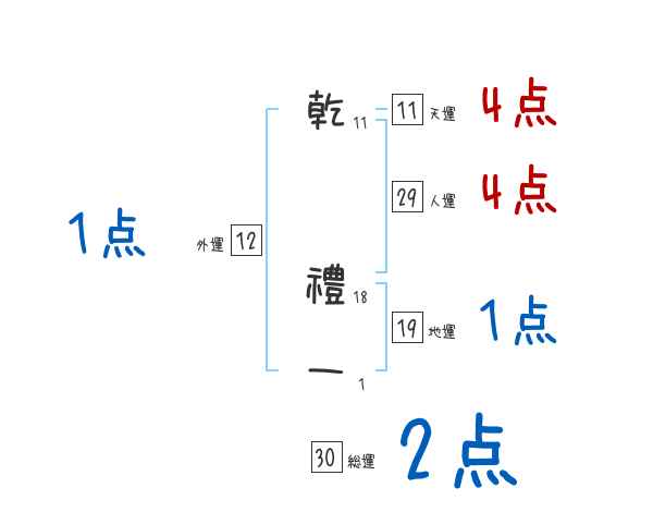総運![]() | 乾禮一さんの総運は30画の2つ星!浮き沈みの激しさに注意しましょう。 あなたの人生を表す1番重要な運勢です。生涯を通じて影響する総合運となり、主に50歳以降の晩年期に影響を及ぼします。 |