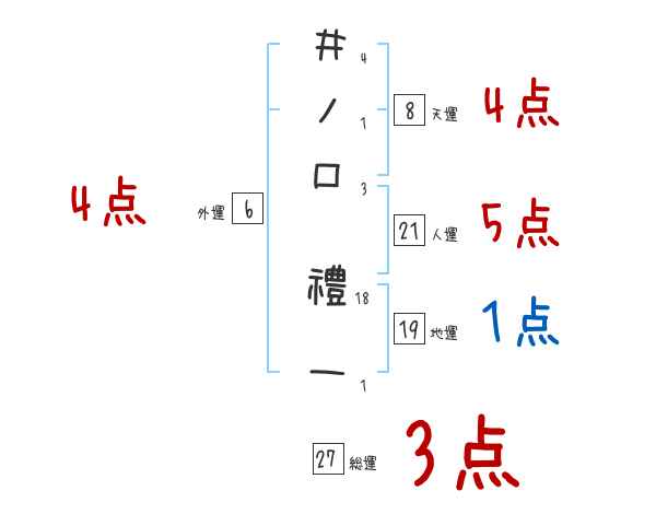 総運![]() | 井ノ口禮一さんの総運は27画の3つ星!頭脳明晰だが強情で摩擦が多い傾向。孤立に注意。 あなたの人生を表す1番重要な運勢です。生涯を通じて影響する総合運となり、主に50歳以降の晩年期に影響を及ぼします。 |