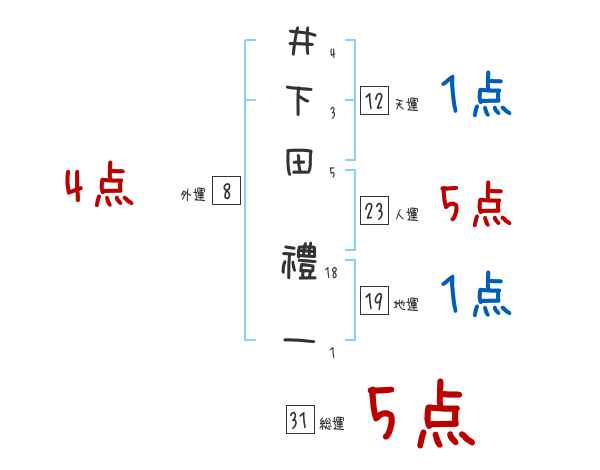 井下田禮一さんの画数の鑑定結果