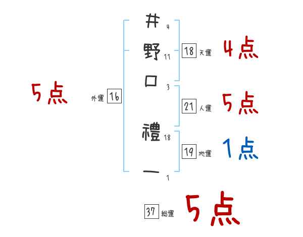 井野口禮一さんの画数の鑑定結果