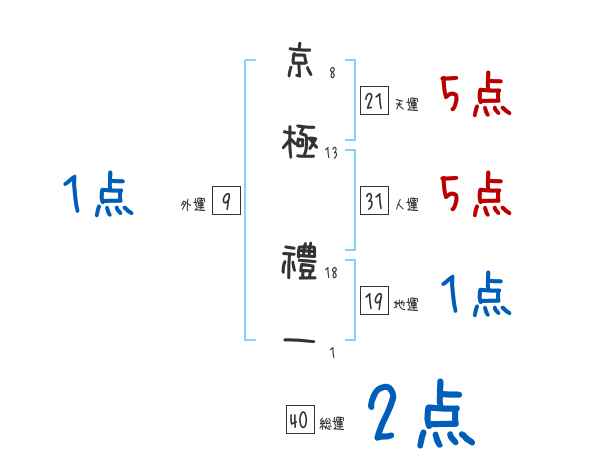 京極禮一さんの画数の鑑定結果
