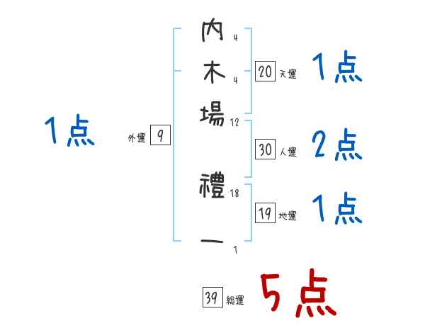 総運![]() | 内木場禮一さんの総運は39画の5つ星!社交性に優れ人望が厚い。人の上に立ち成功する。 あなたの人生を表す1番重要な運勢です。生涯を通じて影響する総合運となり、主に50歳以降の晩年期に影響を及ぼします。 |
