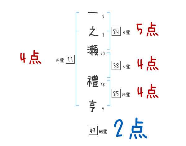 総運![]() | 一之瀬禮亨さんの総運は49画の2つ星!不安定な性格で明暗がある人生。周りの人には支援されやすい。 あなたの人生を表す1番重要な運勢です。生涯を通じて影響する総合運となり、主に50歳以降の晩年期に影響を及ぼします。 |