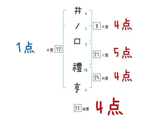 天運![]() | 井ノ口禮亨さんの天運は8画の4つ星!勤勉家。根気強く努力し成功する。忍耐力がある。 家系が持つ宿命的な運勢を表します。祖先から受け継いだ苗字ですので自分の力が及びません。家柄を象徴します。 |