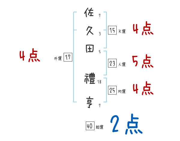 佐久田禮亨さんの画数の鑑定結果