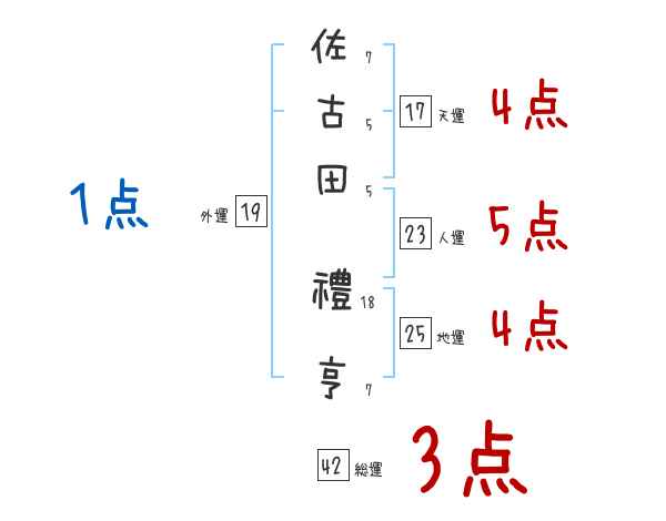 佐古田禮亨さんの画数の鑑定結果