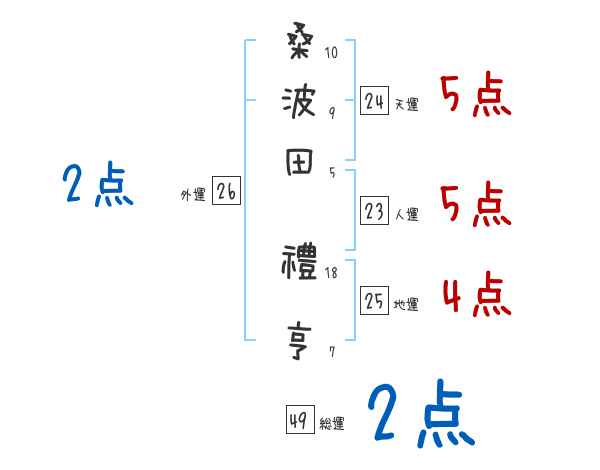 桑波田禮亨さんの画数の鑑定結果