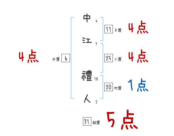 天運![]() | 中江禮人さんの天運は11画の4つ星!着実に富や地位を得る幸運な人生。 家系が持つ宿命的な運勢を表します。祖先から受け継いだ苗字ですので自分の力が及びません。家柄を象徴します。 |