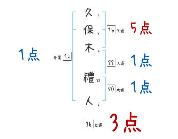 総運![]() | 久保木禮人さんの総運は36画の3つ星!先見性が豊かです。多少神経質で苦労することも。 あなたの人生を表す1番重要な運勢です。生涯を通じて影響する総合運となり、主に50歳以降の晩年期に影響を及ぼします。 |