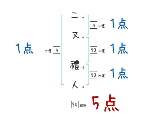 天運![]() | 二又禮人さんの天運は4画の1つ星!感情が不安定で苦労するかも。周囲との協調を心掛けましょう。 家系が持つ宿命的な運勢を表します。祖先から受け継いだ苗字ですので自分の力が及びません。家柄を象徴します。 |