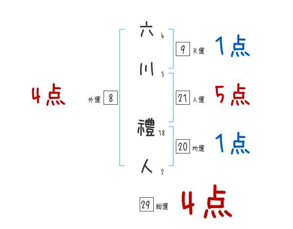 外運![]() | 六川禮人さんの外運は8画の4つ星!勤勉家。根気強く努力し成功する。忍耐力がある。 生活面を象徴する運勢です。外部から受ける影響力を表し、結婚運、家庭運や職場、環境への順応性を表します。 |