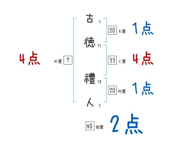 外運![]() | 古徳禮人さんの外運は7画の4つ星!強い意志や信念を持ち独立心が強い。自立する。 生活面を象徴する運勢です。外部から受ける影響力を表し、結婚運、家庭運や職場、環境への順応性を表します。 |