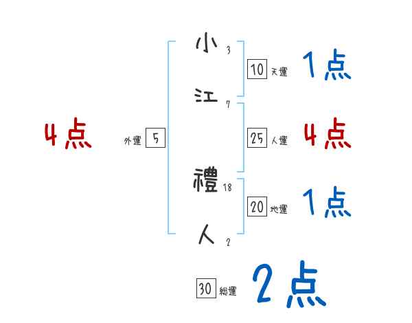 小江禮人さんの画数の鑑定結果