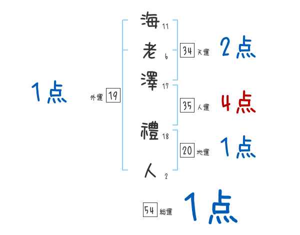 人運![]() | 海老澤禮人さんの人運は35画の4つ星!温厚な性格で感受性が高い。穏和な性格で人望が厚い。 性格や才能などを表す2番目に重要な運勢です。人間関係や協調性、社会的な成功に影響します。主に20歳から50歳ぐらいまでの中年期の運勢を表します。 |