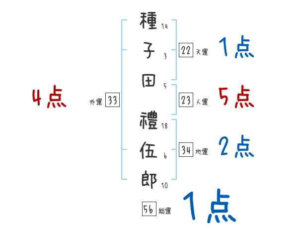 人運![]() | 種子田禮伍郎さんの人運は23画の5つ星!想像力に優れ活力がある。一代で成功し名誉を手に入れる。 性格や才能などを表す2番目に重要な運勢です。人間関係や協調性、社会的な成功に影響します。主に20歳から50歳ぐらいまでの中年期の運勢を表します。 |