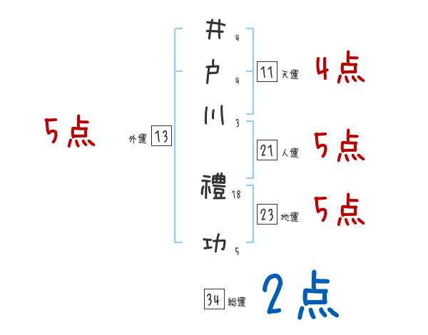 井戸川禮功さんの画数の鑑定結果