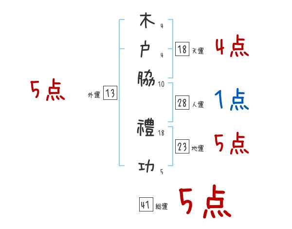 地運![]() | 木戸脇禮功さんの地運は23画の5つ星!想像力に優れ活力がある。一代で成功し名誉を手に入れる。 個性を表す基礎的な運勢です。性格形成や対人関係、行動力など家庭環境に影響されます。主に誕生してから20歳くらいまでの若年期の運勢を表します。 |