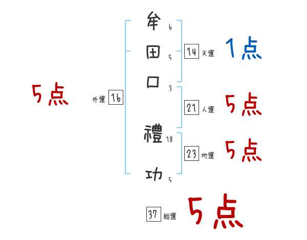 牟田口禮功さんの画数の鑑定結果
