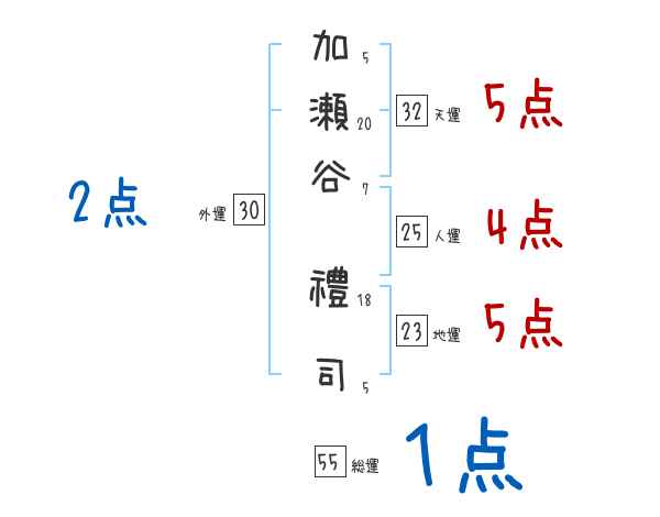 加瀬谷禮司さんの画数の鑑定結果