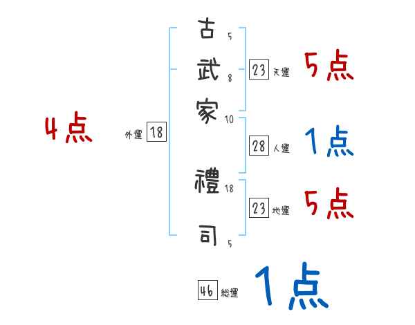 古武家禮司さんの画数の鑑定結果