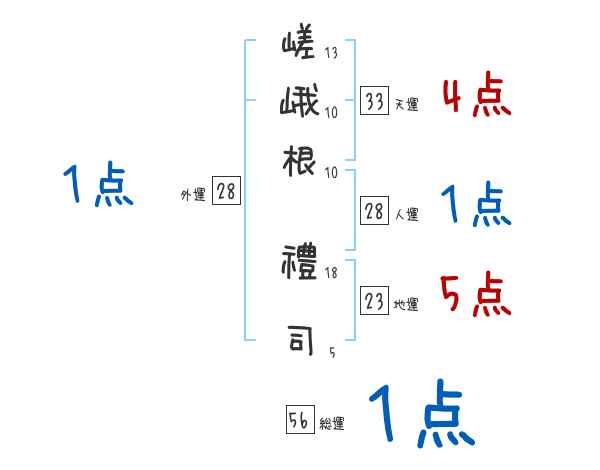 嵯峨根禮司さんの画数の鑑定結果