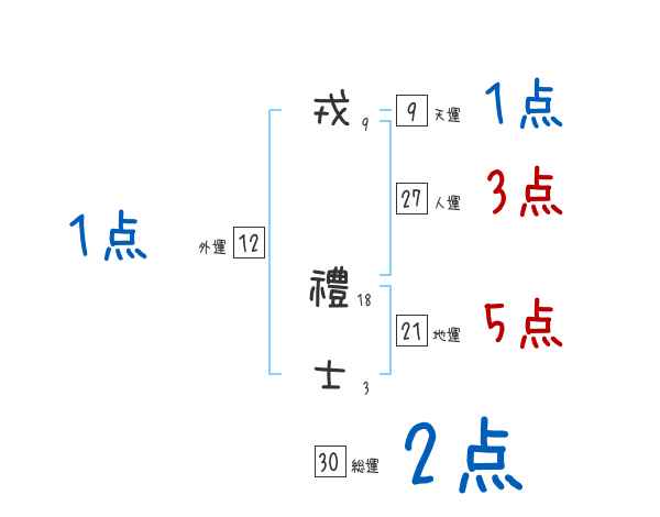 戎禮士さんの画数の鑑定結果