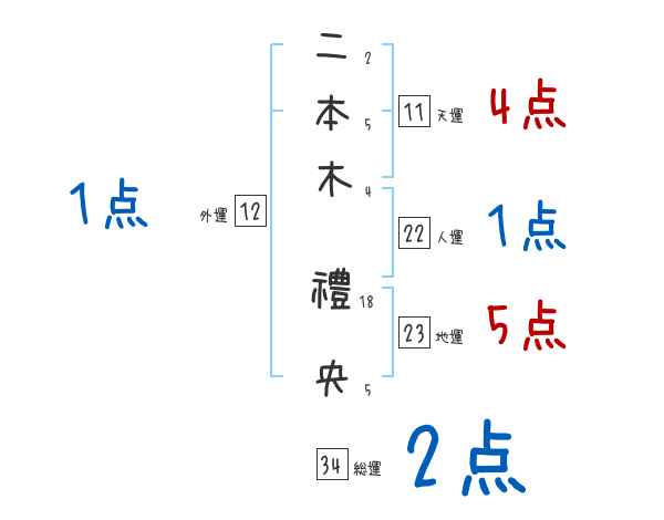 二本木禮央さんの画数の鑑定結果