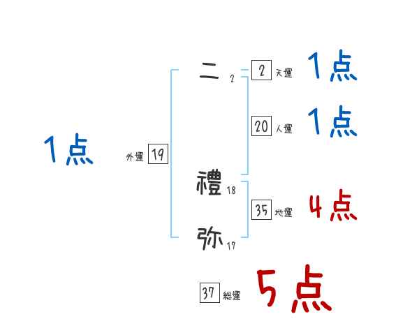 二禮弥さんの画数の鑑定結果
