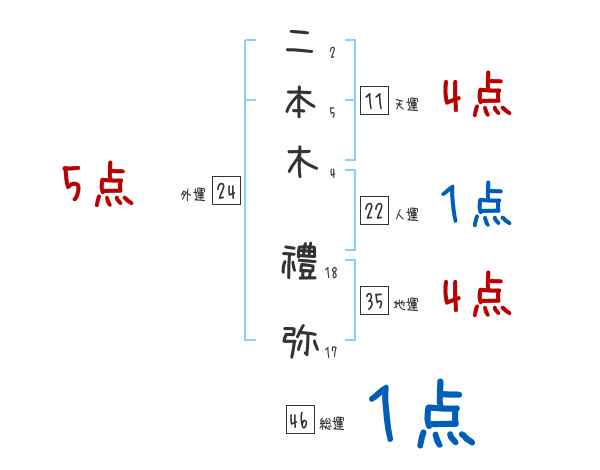 二本木禮弥さんの画数の鑑定結果