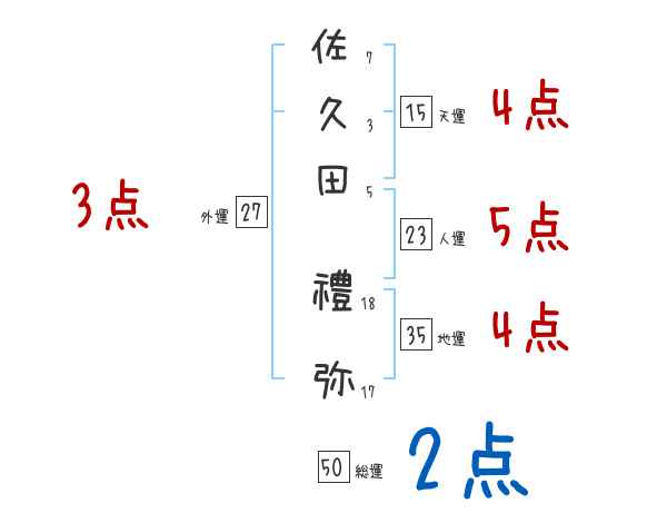 天運![]() | 佐久田禮弥さんの天運は15画の4つ星!人徳があり出世する。順調に物事を進め円満な人生。 家系が持つ宿命的な運勢を表します。祖先から受け継いだ苗字ですので自分の力が及びません。家柄を象徴します。 |