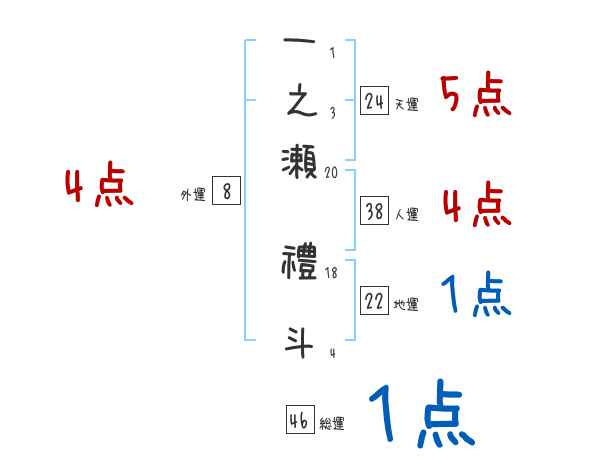一之瀬禮斗さんの画数の鑑定結果