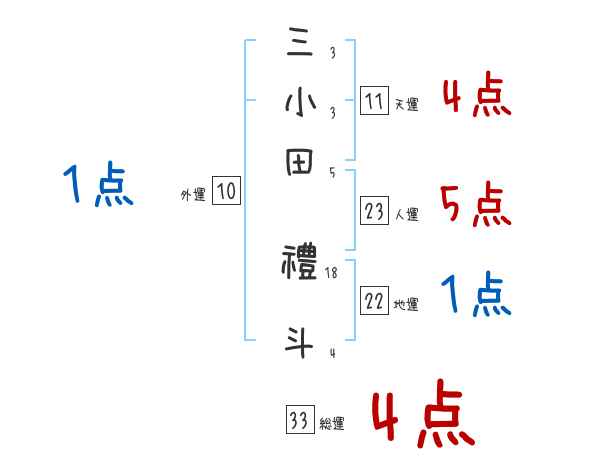 三小田禮斗さんの画数の鑑定結果